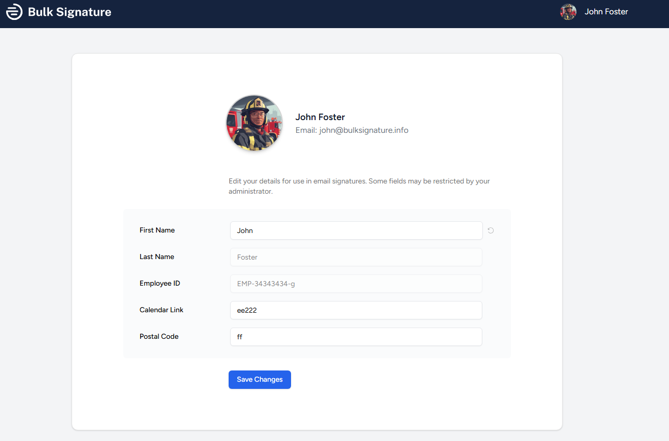 User portal link also allows your users to correct some parts of their signature.Furthermore, you can instruct them to fill out their custom fields accordingly.